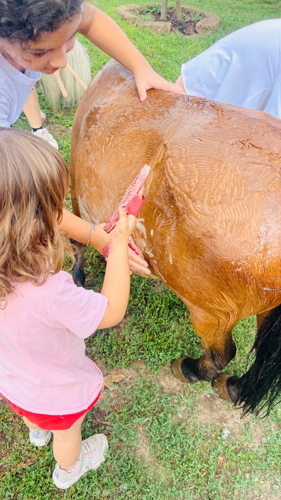 🐴 Piccoli fattori al lavoro! Ogni mattina i bambini aiuteranno a distribuire il cibo agli animali e ad accudire cavalli, pony, pecore, asini, daini, maiali e galline.