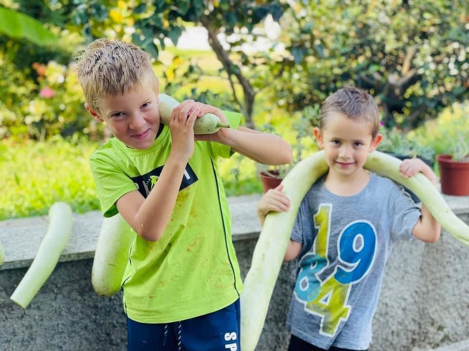 accudendo gli animali, piantando verdure e giocando all’aria aperta.
